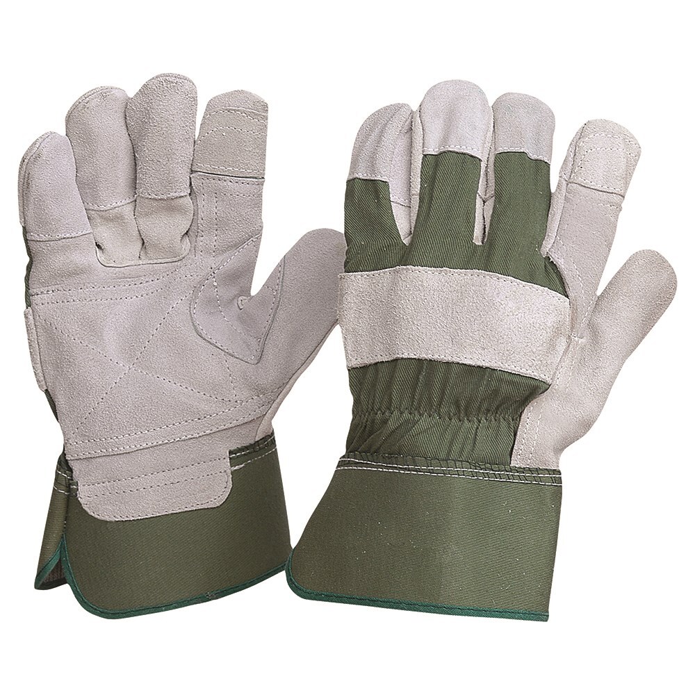 Green Cotton/Cowsplit Leather Gloves - Heavy Duty